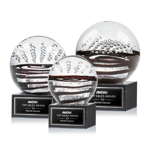 Introducing the Serenity Award, a breathtaking art glass trophy that beautifully embodies movement and depth with its flowing patterns and suspended bubbles. This exquisite piece is meticulously hand-crafted by skilled artisans, ensuring each award is a unique masterpiece. Resting on a sleek square marble base, it offers a perfect space for personalized engraving, making it a meaningful tribute to excellence. The globe shape adds an elegant touch, capturing the essence of artistry and distinction. Ideal for commemorating achievements with grandeur and sophistication, the Serenity Award is a perfect choice for those seeking to honor accomplishments in style.
