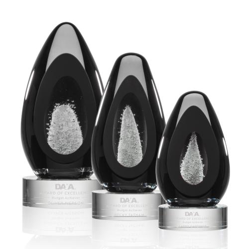 Celebrating achievements just became more elegant with the Newsome Tear Drop on Clear Base Glass Trophy. Crafted from the finest glass, each trophy is a handmade marvel, distinct with its polished ebony surface and a teardrop silhouette that captures the light with grace. Within its smooth, reflective exterior lies a crystalline sculpture, reminiscent of an icy mountain peak, achieved through meticulous cuts that create a stunning display of depth and beauty. Sitting atop a robust clear base, which provides ample space for personalized engravings, this award is a sophisticated symbol of excellence. Ideal for commemorating significant milestones and high honors, it will be treasured for its timeless design and the unique story it tells with every individual piece.