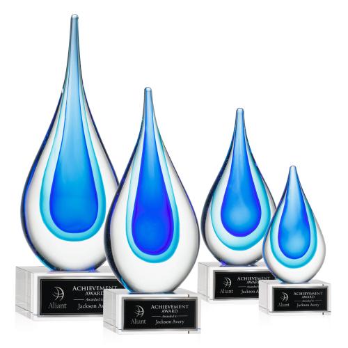 Celebrate excellence with the Eubanks on Plated Crystal Base - Clear, an exquisite symbol of achievement that melds artistic elegance with timeless recognition. This sophisticated award features a pristine glass teardrop elegantly accented with tranquil blue hues, evoking a sense of depth and distinction. Gracefully resting on a crystal Hancock base, this Marsielle Award is enhanced with a customizable laser-engraved plate, offering a personal touch to commend outstanding accomplishments. Each piece is thoughtfully presented in a luxurious black satin-lined gift box, ensuring an impressive presentation for significant milestones or heartfelt appreciations. Crafted with immaculate glass atop crystal, this teardrop-shaped treasure reflects the pinnacle of dedication and success, an ideal tribute for those who stand apart.