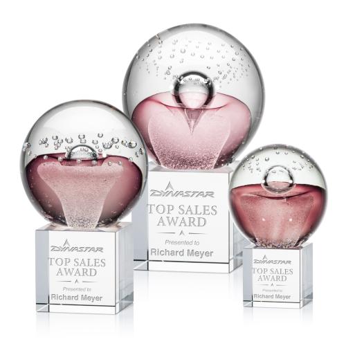 Elevate your recognition with the exquisite Carrasco Globe on Square Crystal Base Glass Trophy. A celestial celebration of achievement, this handcrafted award features a stunning globe of ruby red art glass, adorned with effervescent clear bubbles, symbolizing the heights of success. The globe is delicately perched atop an optic crystal cube base that gleams with clarity and brilliance. Each trophy is a unique creation, ensuring that no two awards are exactly alike, making it as individual as the accomplishment it celebrates. Perfect for corporate accolades or personal milestones, this trophy promises to be a captivating centerpiece that honorees will treasure. Start with a pristine, unadorned canvas and let us help you customize it to create a truly personalized tribute.