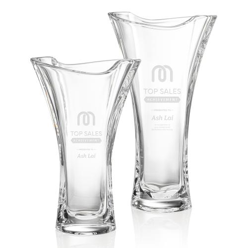 Introducing the exquisite Sanchez Flared Vase, a masterpiece crafted from premium crystal that serves as a stunning addition to any home decor. Its elegant flared silhouette and unique waved design at the opening make it an ideal centerpiece for floral arrangements or decorative displays. This vase offers a sophisticated touch of class and beauty, enhancing any setting with its graceful presence. Whether as a gift or a personal indulgence, customize this piece to create a truly meaningful statement. Elevate your space with the timeless elegance of the Sanchez Flared Vase, where impeccable style meets functional artistry.