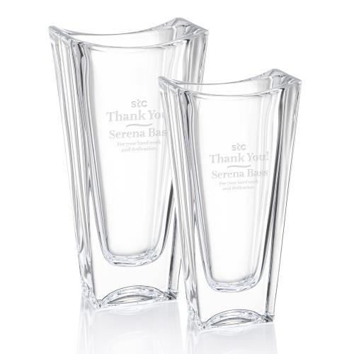 Elevate your award ceremony or gift-giving occasion with the Chappell Vase, a contemporary crystalline masterpiece that exudes sophistication. This stunning piece features a unique bowed rectangular top that gracefully transitions into an oval opening, offering a modern twist on the classic cup shape. Crafted from fine crystal, the Chappell Vase captures and refracts light beautifully, making it an exquisite centerpiece or a treasured memento. While the vases presented may show customization options, each Chappell Vase begins as a blank canvas, awaiting your personalized touch. Whether recognizing excellence or celebrating a special moment, the Chappell Vase promises to leave a lasting impression. A matching bowl is also available to complete this elegant collection.