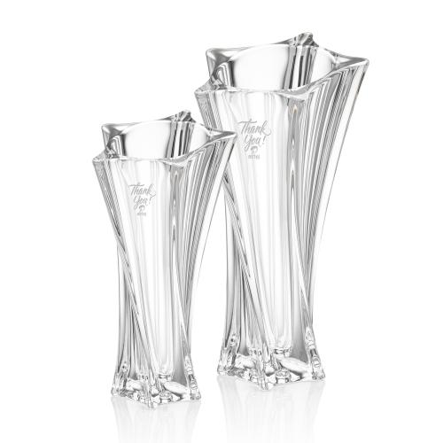 Celebrate achievements with grace and splendor using the Doherty Waisted Vase - an exquisite piece meticulously crafted from lead-free crystal. Featuring a distinctive star-shaped design, this vase combines durability with a luxurious aesthetic, making it an ideal award or gift for any special occasion. Available in two sizes to suit your preference, each vase offers a generous space for personalized engraving, ensuring your message of appreciation resonates deeply with its recipient. The cup-shaped elegance promises to capture the light and reflect the brilliance of every accomplishment, symbolizing a timeless honor that can be cherished for years to come. Whether displayed as a standalone piece or as part of a distinguished collection, this crystal vase is sure to leave a lasting impression.