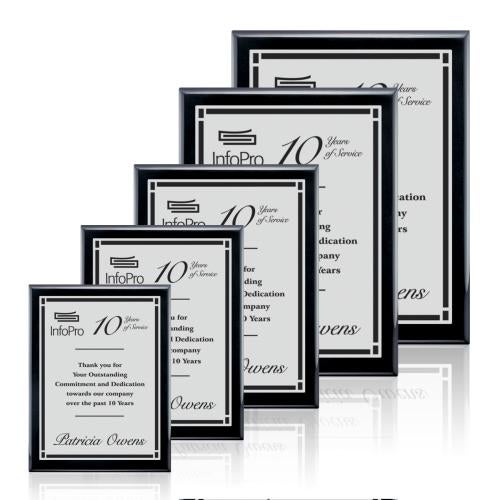 Celebrate milestones and recognize excellence with the Sloan Meredith Black/Satin Silver award plaques, a perfect blend of elegance and durability. Our plaques feature striking black engraving on lustrous satin plates, creating a sophisticated contrast that draws the eye and underscores the significance of the achievement. Crafted from robust wood, these plaques come in three distinct sizes, offering versatility for any occasion. Whether commemorating a decade of service or highlighting a recent accomplishment, these awards start blank for you to customize a heartfelt message that honours the recipient's dedication and success. Add a touch of classic refinement to your accolades with these timeless pieces from Trophy.com.