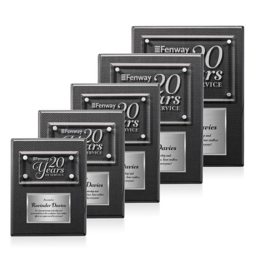 Celebrate exceptional achievements with the distinguished Woodward Plaque, a symbol of recognition that uniquely blends sophistication with modern design. This plaque features a beveled Starfire Crystal, impeccably clear and offset against a robust piano-finished carbon fiber backing that exudes an air of contemporary elegance. A two-tone, brushed and polished silver double plate underlines the plaque's premium aesthetic, offering ample space for personalized engraving to commemorate milestones or honor individuals. Crafted from high-quality glass and shaped into a classic rectangle, this award stands as a testament to professional excellence and personal milestones alike, ensuring it resonates with the recepient's pride and the audience's admiration.