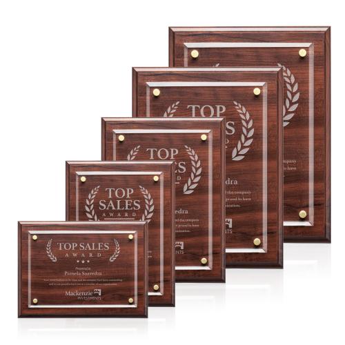 Celebrate accomplishments with the timeless elegance of the Hutton Award. This regal recognition piece is crafted with a rich cherry finish that serves as a stately backdrop to the dazzling beveled crystal center plate. The plate itself is gracefully suspended above the surface by sophisticated gold standoffs, adding a three-dimensional depth and refinement to the award. Each Hutton Award is ready to be customized, transforming it into a personal testament to excellence and achievement. Perfect for corporate recognition, academic honors, or any special occasion, the Hutton Award exudes a sense of prestige and pride that will be cherished for years to come.
