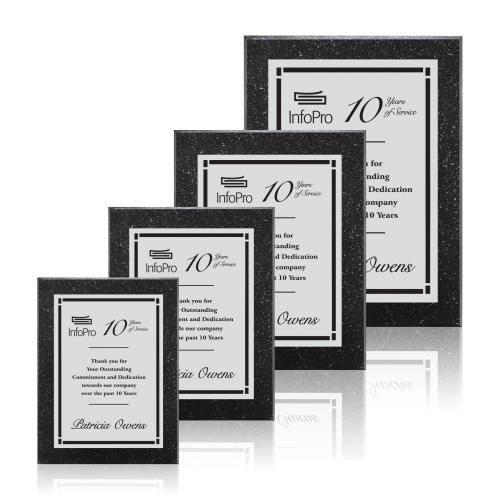 Honor excellence and commemorate outstanding achievements with the Sloan Mills - Silver Award. This series of sophisticated plaques is elegantly crafted with genuine granite, giving it a timeless appeal that resonates with prestige. An attached silver engraving plate awaits personalization to create a truly unique and personalized recognition for any occasion, from corporate milestones to individual accolades. Its metallic construction ensures durability, making it not only a symbol of appreciation but also a lasting keepsake. Whether displayed in an office, home, or hall of fame, the Sloan Mills - Silver Award stands as a testament to dedication and success.