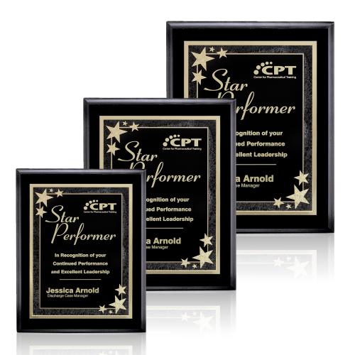 Celebrate outstanding achievements with the timeless elegance of the Murdock Stark Black Finish Plaque. This exemplary piece is crafted from premier wood with a sophisticated black finish, offering a visually striking backdrop to the contrasting solid brass plate that awaits your personalized message of excellence. Available in three distinct sizes and three classic colors, this plaque can cater to a variety of award needs, rendering it perfect for recognizing individual or team accomplishments. Whether it's for stellar performance, dedicated service, or exceptional leadership, this plaque stands as a distinguished token of recognition that is sure to be cherished by its recipients.