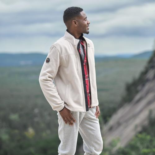 The Westville Eco Microfleece Full Zip for men is made from a soft blend of recycled polyester anti-pill microfleece, which is constructed for both comfort and durability, a standard for the Roots73 brand. With a roomy chest media pocket, this jacket will hold your smartphone and keep you warm during your nights camping out under the stars. Responsibly sourced, this jacket is made from Global Recycled Standard (GRS) certified fabric and comes in recyclable packaging.