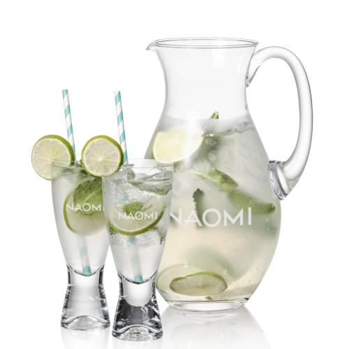 Elevate your entertaining with the Charleston Crystal Pitcher Set, a fusion of elegance and functionality. Made from premium lead-free crystalline, this set features a beautifully designed pitcher with a classic shape for easy pouring alongside 2 or 4 sophisticated Bastien Cocktail glasses. Each piece showcases brilliant clarity and a weight that speaks to its quality. This set becomes uniquely yours with the option for personalized engraving, perfect for special occasions or as a signature addition to your home bar collection. Presented in a plush, satin-lined gift box, it's an impeccable choice for hosting or gifting to those with discerning taste. Whether you're serving a batch of your famed iced tea or a round of artisanal cocktails, the Charleston Pitcher Set exudes style and grace for any event.