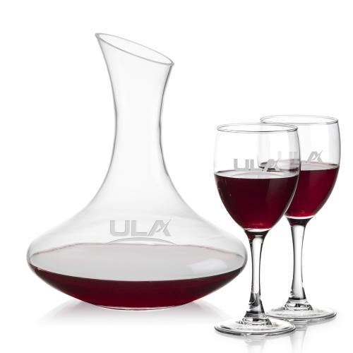Elevate your wine tasting experience with the elegant Compton Carafe & Reese Wine set, designed for the true wine connoisseur. This exquisite 60oz glass carafe, available with two or four matching wine glasses, is perfect for unlocking the vibrant flavors of young wines. Its sleek design not only enhances the aesthetic of your dining table but also optimizes the aeration process, bringing out the best in every pour. Ideal as a thoughtful gift or a sophisticated addition to your own collection, this carafe set combines function and style in perfect harmony. Personalize it to make every occasion uniquely yours.