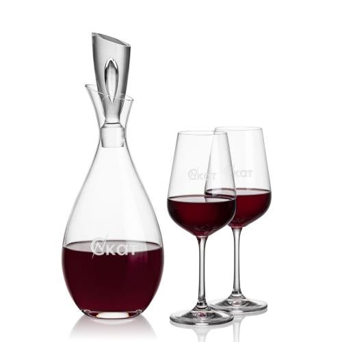 Elevate your wine experience with the Pickett Decanter & Cordero Wine Glass Set â a true embodiment of refinement and functional elegance. The flawless Juliette Decanter is specifically designed to enhance the bouquet and taste of your favorite wines, ensuring a perfect decant every time. Accompanied by two exquisite 12oz Laurent Stemmed Wine Glasses, this set is ideal for savoring everything from a robust Cabernet to a delicate Riesling. Crafted from brilliant crystal, this ensemble is not just a luxurious addition to any connoisseur's collection but also an exceptional gift choice for holidays, special events, or as a distinguished recognition award. Start with a blank canvas for personalization or keep the sleek sophistication untouched; either way, this set promises to impress.