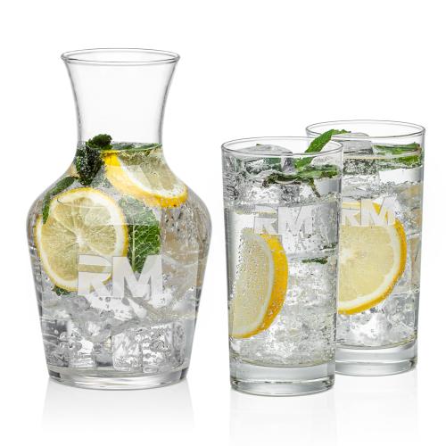 Elevate your entertaining experience with our Summit Carafe & Russell Beverage set, a refined choice for those who appreciate the art of serving. The 34oz Summit Carafe boasts a classic trattoria silhouette with an ample bowl, allowing your drinks to breathe and release their full bouquet. Each set comes with the option of either 2 or 4 Aristocrat 13oz Beverage Glasses, which feature an ideal shape for iced cocktails, enhancing the enjoyment of your preferred libations. Crafted from high-quality glass, this carafe and glass set promises both beauty and functionality for your gatherings or as a distinguished gift. Personalization is available, presenting an opportunity to create a tailored touch for awards, recognitions, or memorable occasions.