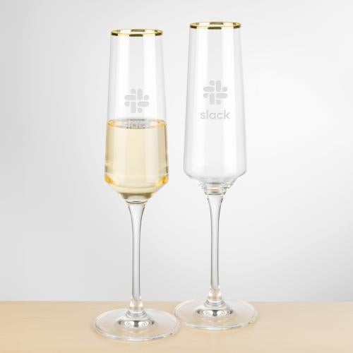Introducing the Ledford Gold Rim Flute - Deep Etch, a stunning piece of barware crafted from exquisite crystal to enhance your celebratory moments. Its tall, slender silhouette is designed to preserve the effervescence and brilliance of your favorite champagne or sparkling wine. The elegant gold rim adds a sophisticated finishing touch, making it an ideal choice for weddings, corporate events, or any occasion worth toasting. While the flute arrives blank, its deep etch capabilities allow for personalized engravings, adding a meaningful touch to your gift or recognition efforts. Elevate your toasts with the Ledford Gold Rim Flute and let every sip sparkle with elegance.