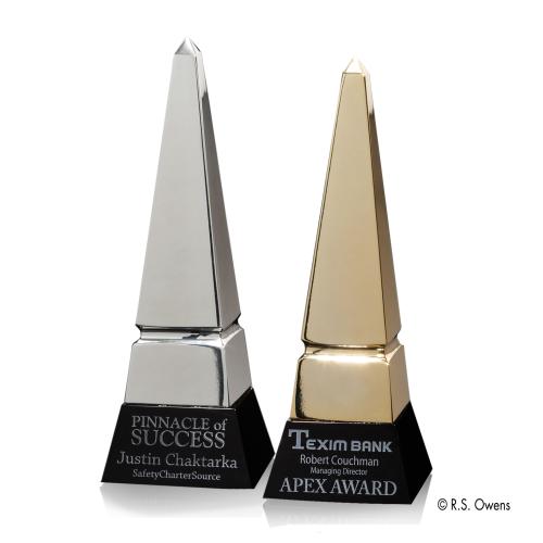Celebrate monumental achievements with the distinguished Apex Obelisk Metal Trophy, a symbol of steadfast success and towering ambition. This exquisite trophy is meticulously crafted from premium metal, culminating in a sleek, classic obelisk shape that radiates refined elegance and enduring quality. Its polished surface mirrors the zenith of accomplishment, while the beveled ebony crystal base offers a substantial and opulent foundation that can be personalized with engravings to honor individual or team milestones. Ideal for corporate recognition, scholarly awards, or personal tributes, the Apex Obelisk Metal Trophy stands as an unforgettable emblem of excellence that is sure to take pride of place in any display.